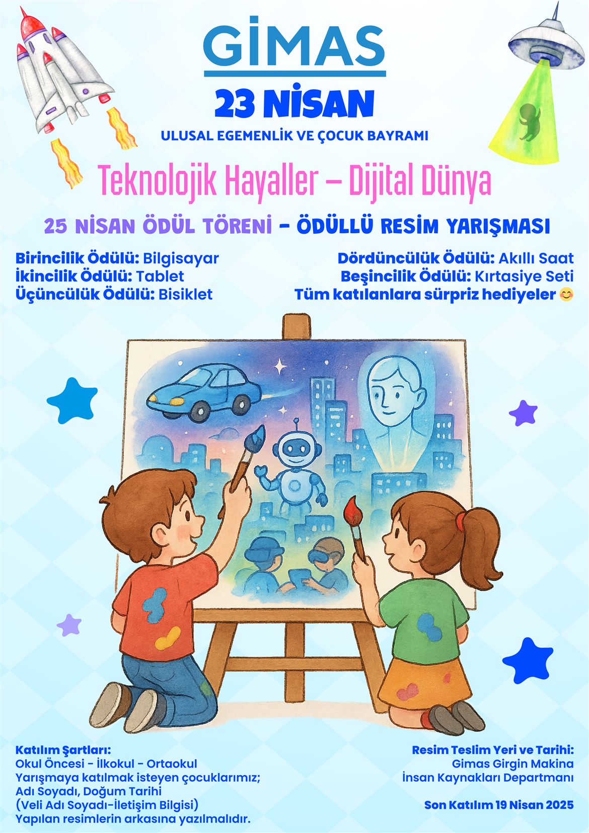 2022’den bu yana her 23 Nisan’da geleneksel hale getirdiğimiz çocuk etkinliğimizi bu yıl da büyük bir heyecanla gerçekleştirdik. Minik sanatçılarımızın hayal güçleriyle ortaya koyduğu rengârenk eserler bizlere umut verdi, yüzümüzü güldürdü. Her bir çocuğumuzu bu muhteşem eserlerinden dolayı yürekten tebrik ediyor, katkı sağlayan tüm ailelerimize teşekkür ediyoruz. Geleceğimizin mimarları olan çocuklarımızın bayramı kutlu olsun!